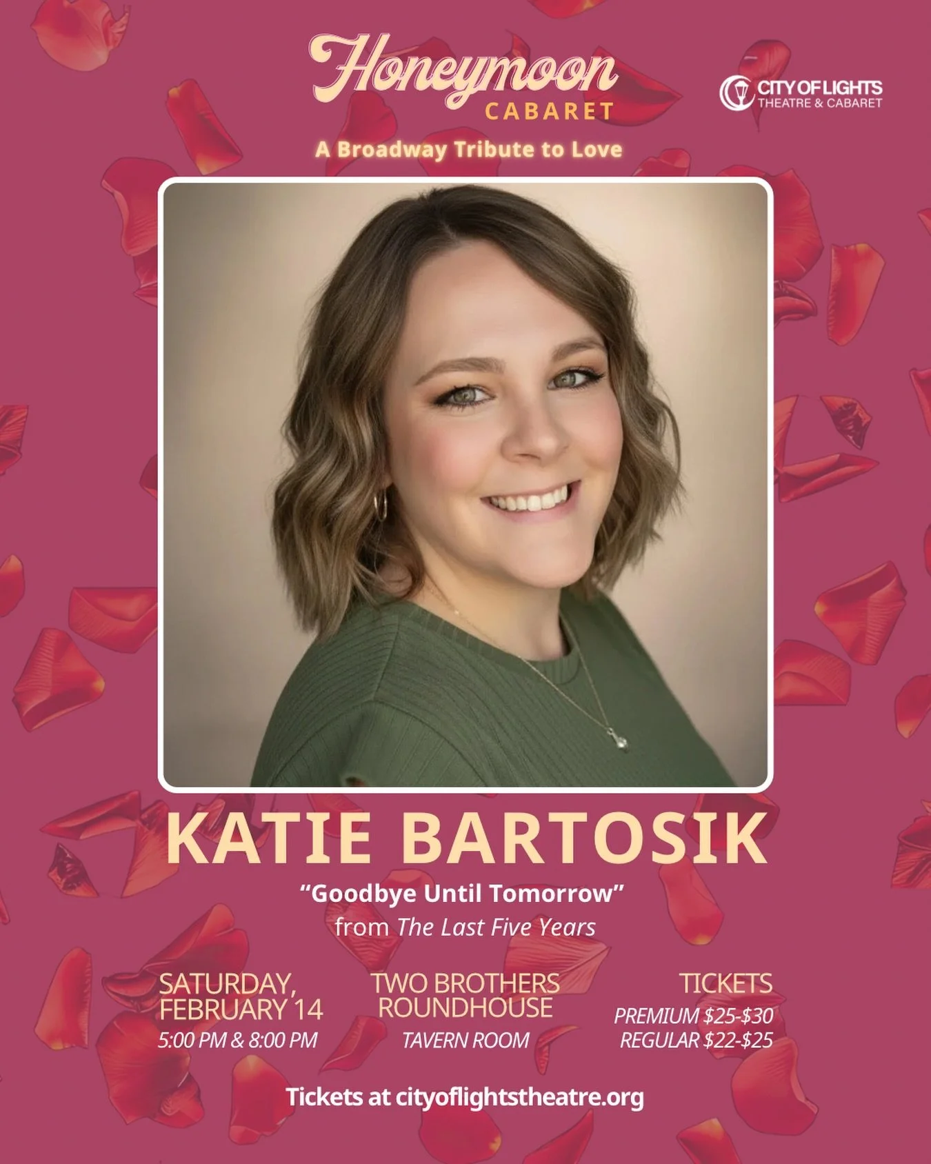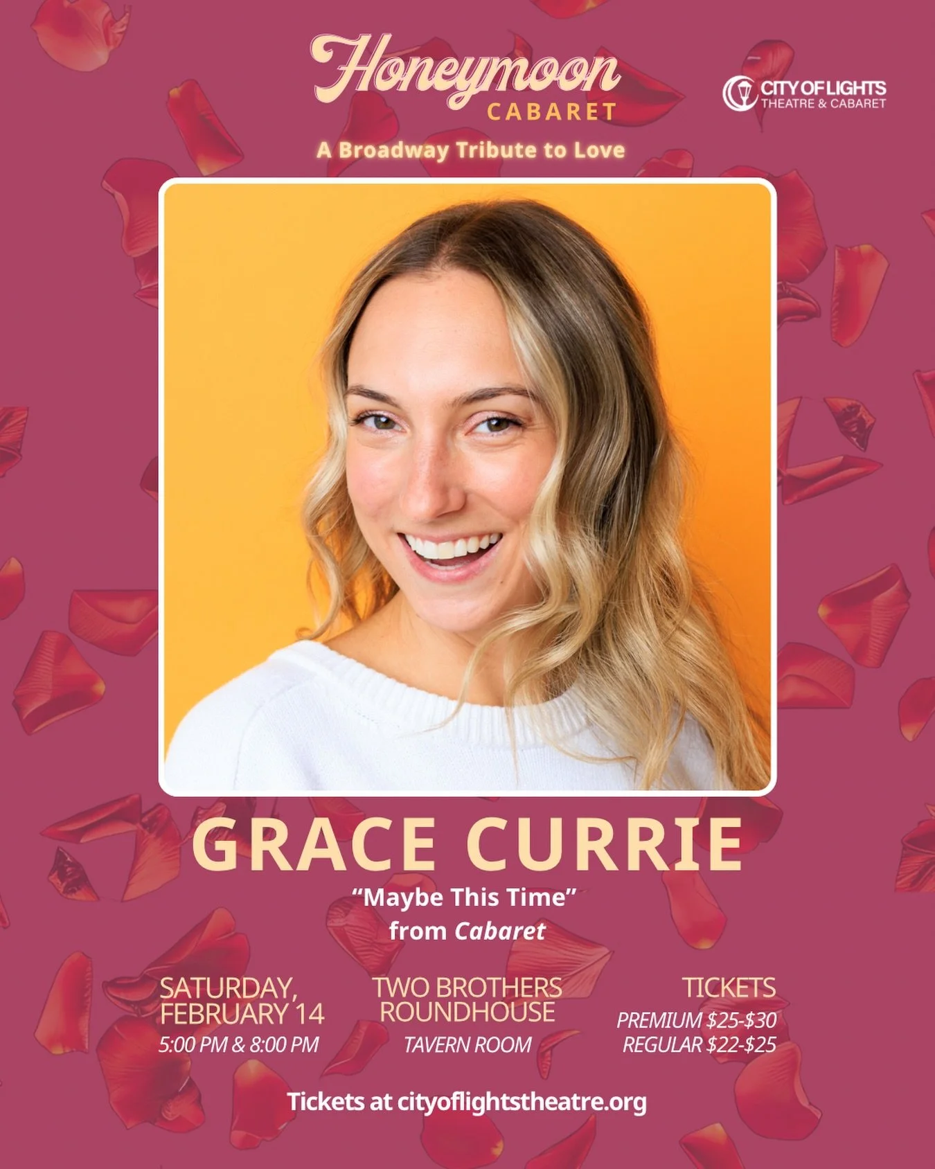 Founded in 2021 in Aurora, Illinois, City of Lights Theatre & Cabaret is a family business, producing cabaret performances at the Two Brothers Roundhouse, Aurora University, Davenport’s Piano Bar & Cabaret, The Venue, and The Den Theatre. Featuring local, professional performers and live musical accompaniment, we pair quality musical theatre songs with the perfect performer.
